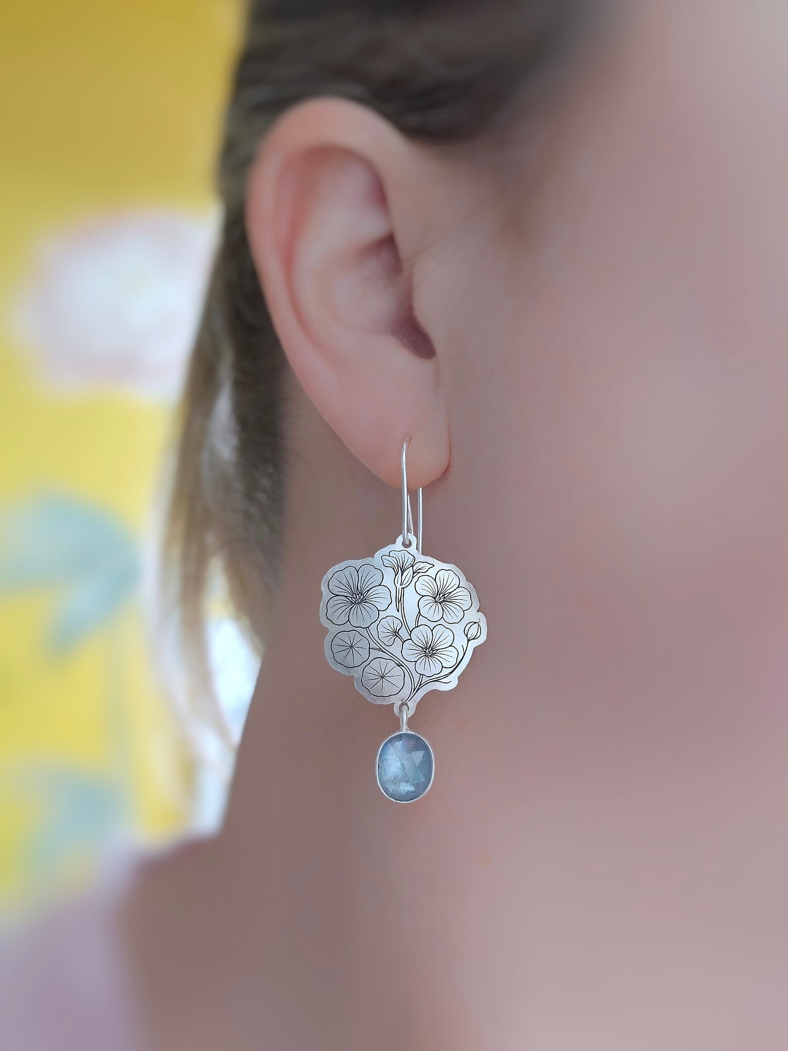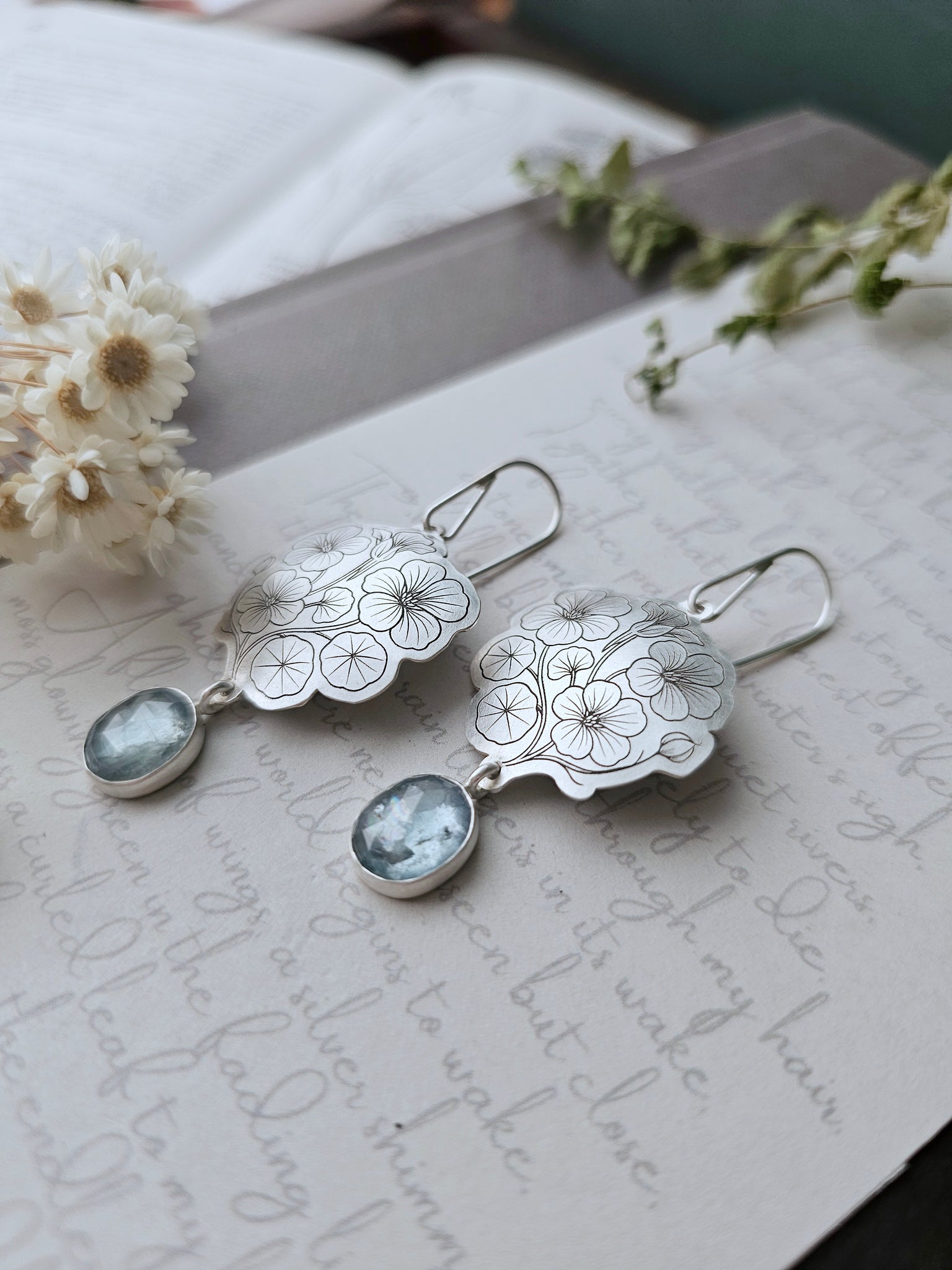 Nasturtiums are the flowers of courage. They climb, twist, and bloom wherever they can find a bit of sun, their round leaves like shields and their petals like fire. I etched them into silver to hold that spirit of boldness, the beauty of growing wherever life plants you.